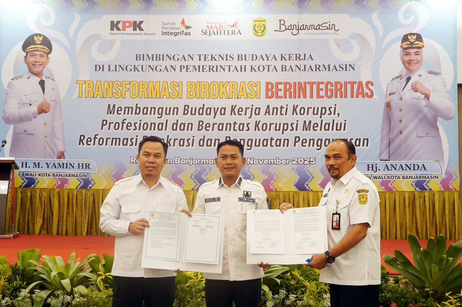 Komitmen itu ditegaskan Wali Kota Banjarmasin, H. Muhammad Yamin HR, saat membuka kegiatan Bimbingan Teknis (Bimtek) Budaya Kerja di Lingkungan Pemerintah Kota Banjarmasin Tahun 2025, yang digelar di Calamus Ballroom Hotel Rattan Inn Banjarmasin, Rabu (5/11/2025).